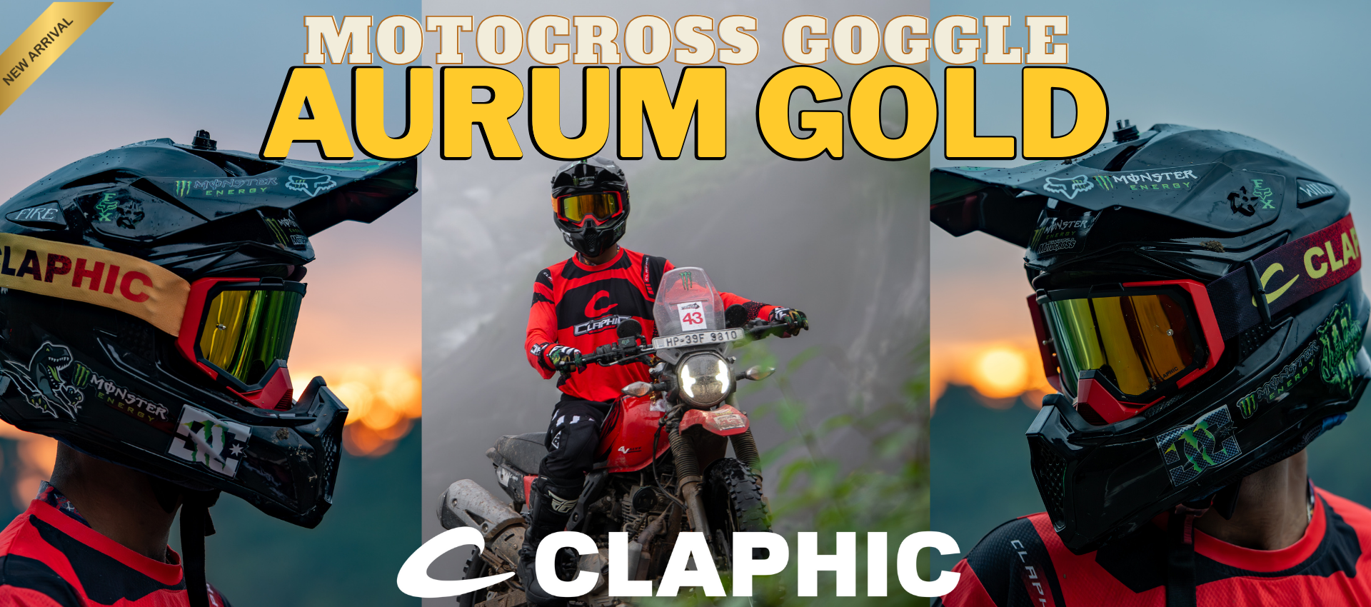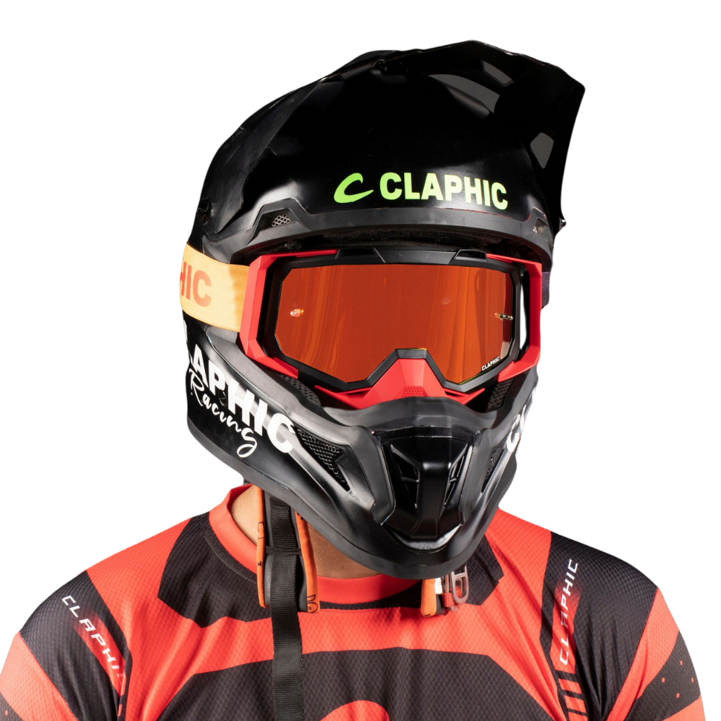 CLAPHIC Neon Fang Motocross Goggle – Gold Green Mirror Lens | UV400, Anti-Fog & OTG Fit