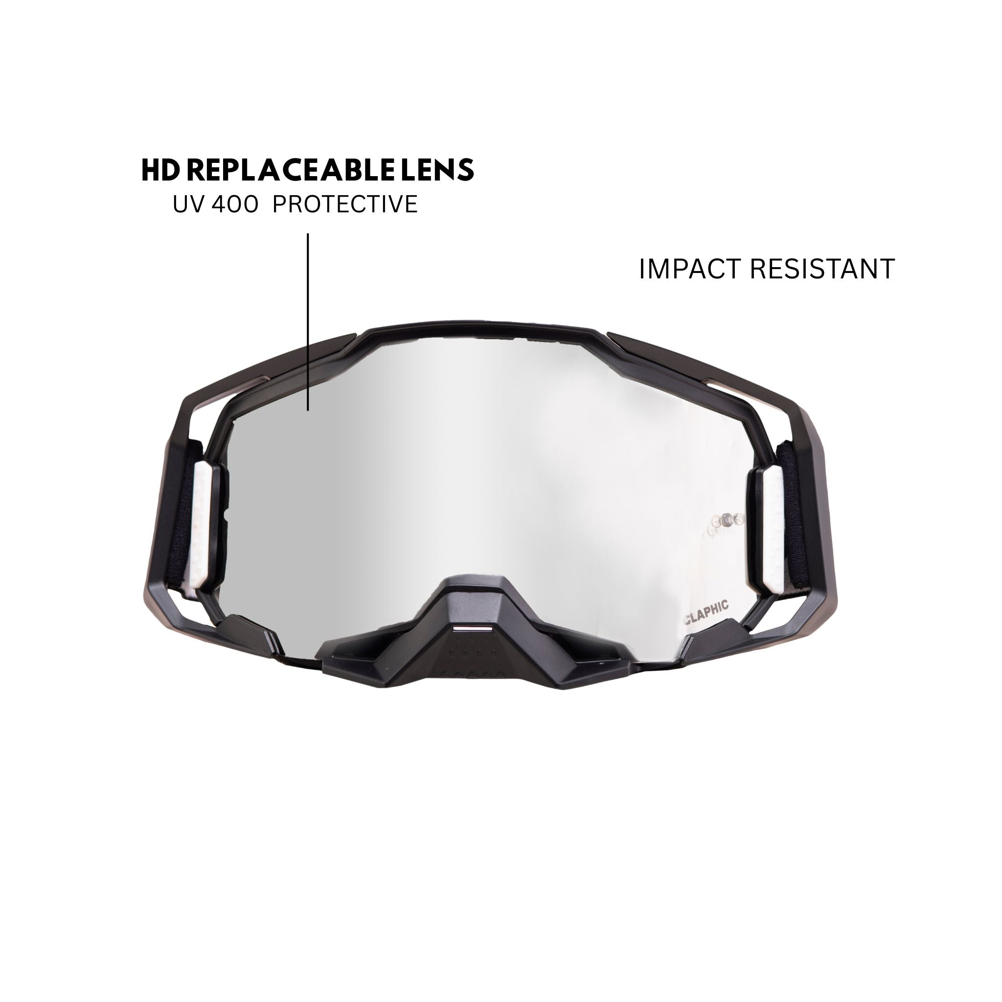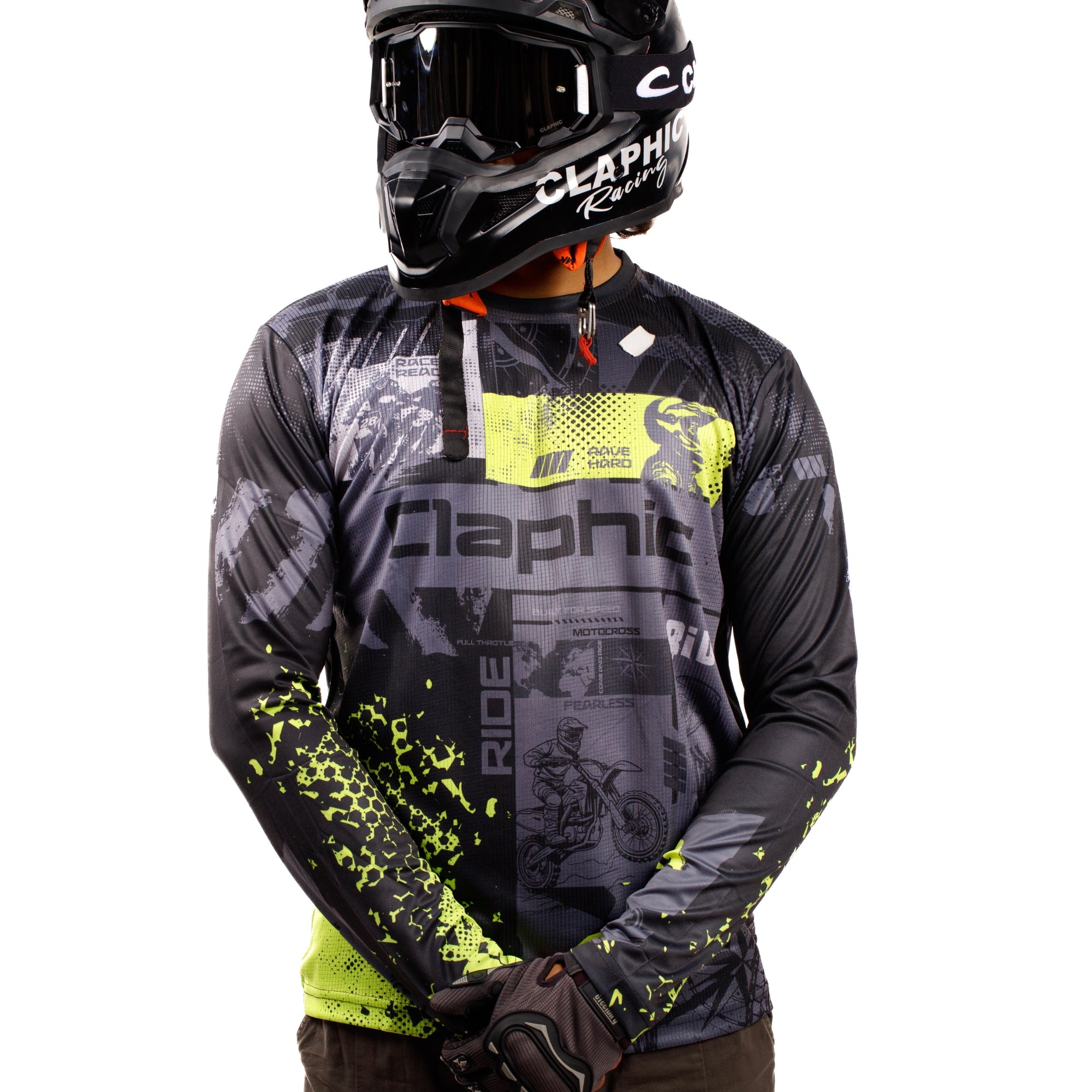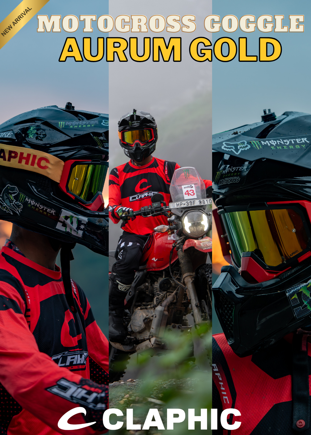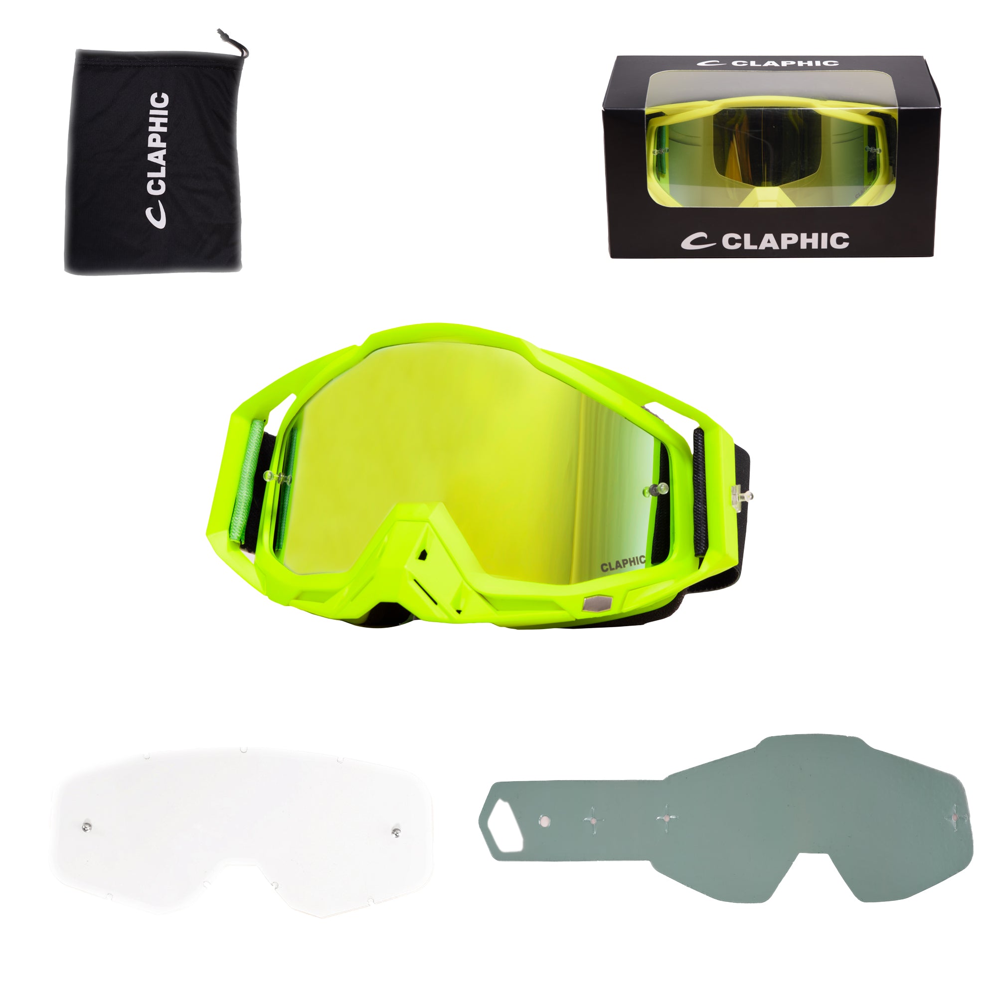 CLAPHIC Neon Fang Motocross Goggle – Gold Green Mirror Lens | UV400, Anti-Fog & OTG Fit