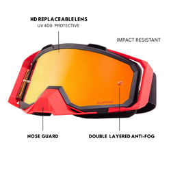 Motocross Goggle – CLAPHIC AURUM GOLD | Anti-Fog UV400 Gold Mirror Lens