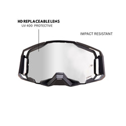 CLAPHIC ARGENTO SILVER Motocross Goggles – Dual Layered Anti-Fog Silver Mirror Lens